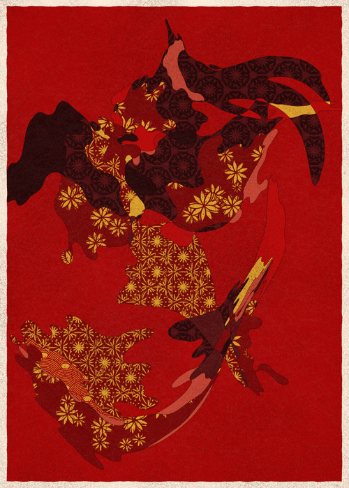 Project Description: Memories of Qilin is inspired by traditional East Asian art. It channels the sense of movement and fluidity found in classical Chinese brushwork, while drawing from the colors, patterns, and forms of ukiyo-e woodblock prints.