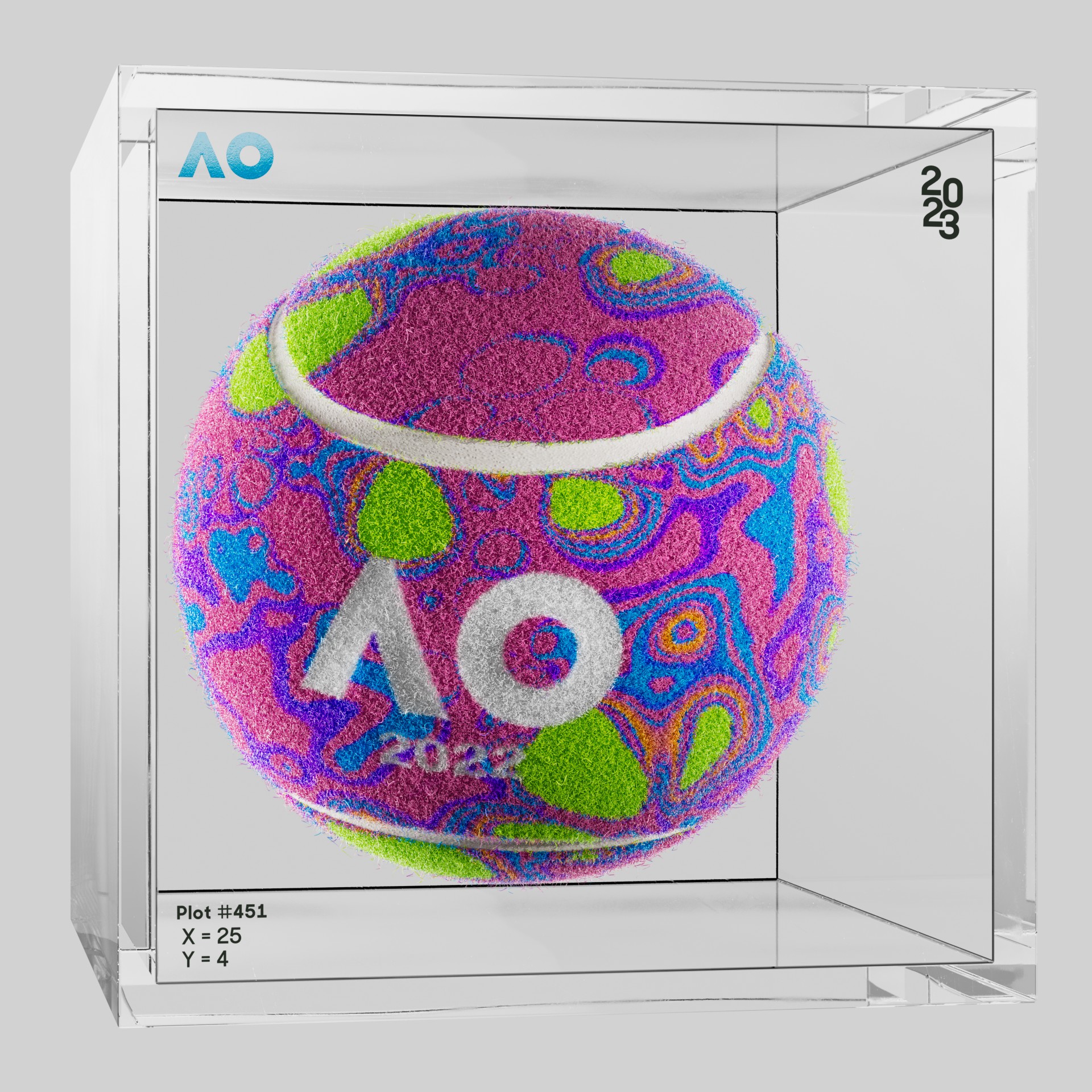 AO ArtBall exists at the intersection of sport and innovation, a membership that unlocks a new arena to keep fans in the game – on and off the court. Membership is accessible via the AO ArtBall, a collection of 6776 NFTs from the AO22 collection and 2454 NFTs from AO23 collection, providing holders with an unprecedented level of tickets from premier tennis, sport, and entertainment events as well as unique rewards from leading web3 projects covering both real life event and virtual worlds. Each ArtBall is linked to a ~17 x 17cm plot on the AO court. If the winning shot from any of the ~400 AO matches lands on that plot, the ArtBall is updated in near real-time to highlight the match inform...