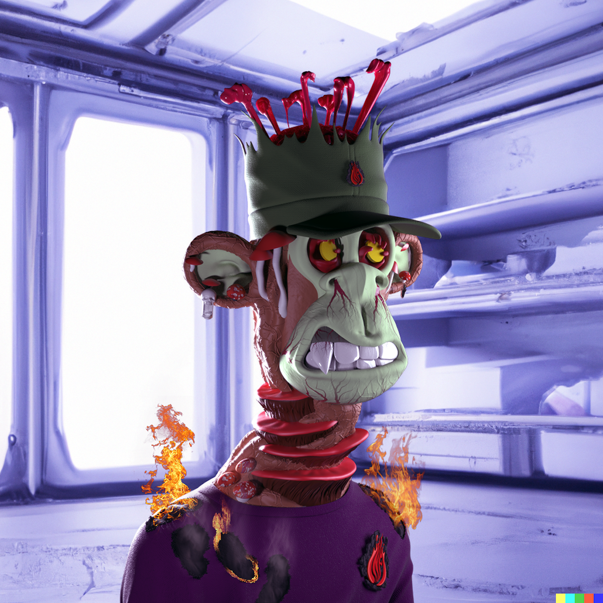 "So we are the only ones who survived?" asked Infi. "No, it's quite a few of us. But you're the only one whose supply survived," she replied. "My clothes?" "Yeah. Everything you had ever designed or even bought for manufacturing, and there is no other clothing on the entire planet. Seems like you're the chosen one," she explained. Minting this NFT unlocks the story of Infi Torem, written by Tino Forbidden. The 3D art is made by Dzeginko and the backgrounds are generated by Artificial Intelligence DALL·E 2.
