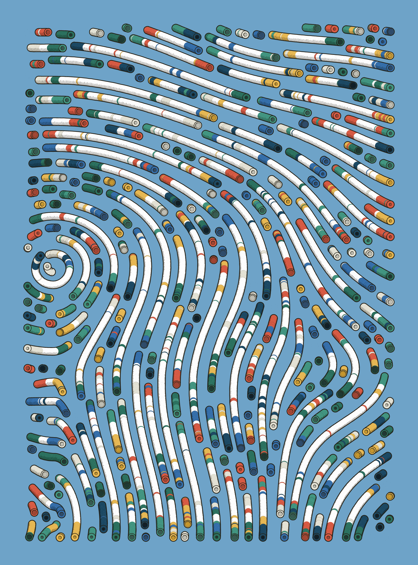 A generative series inspired by childhood memories, play and exploration. The program can use a variety of motions, collision types, colour processes, palettes and scales to create a wide range playful output.