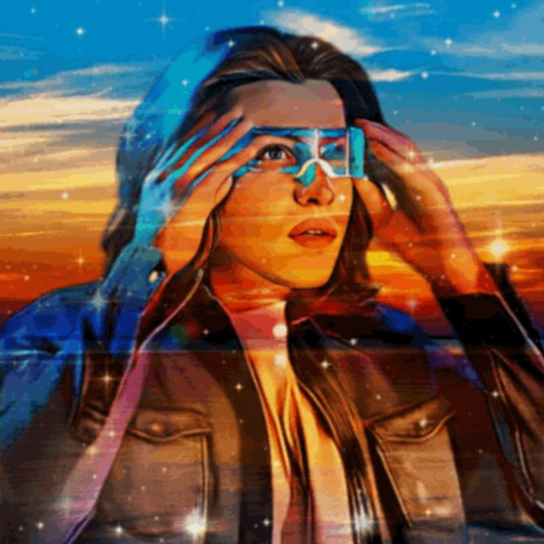 Essa NFT foi feita e inspirada no logo da YourVerse. O Avatar da arte, está olhando para o sol (o que é difícil), pois, com o óculos de realidade virtual, ele apresenta facilidade. Categoria: Mundos Virtuais.