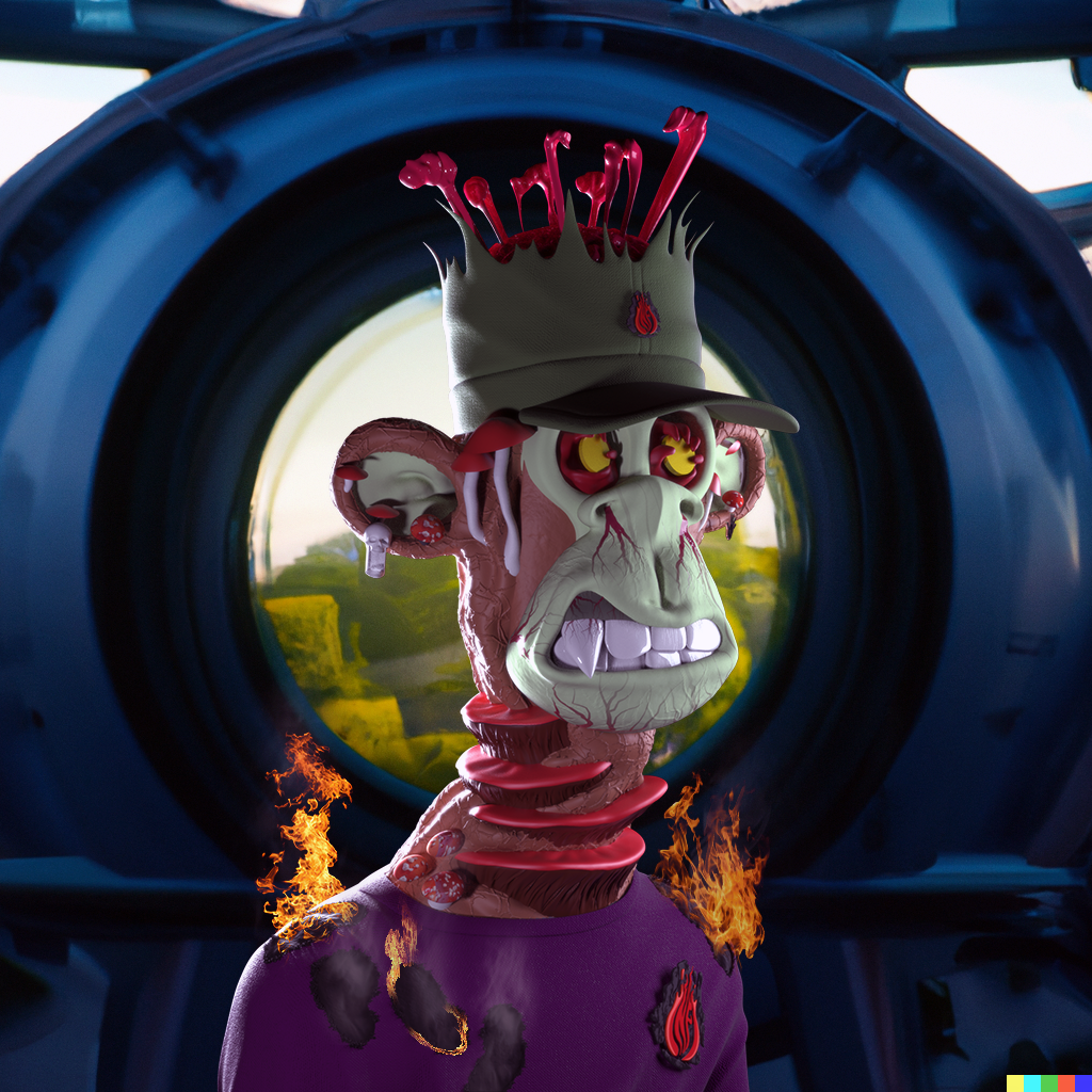 "So we are the only ones who survived?" asked Infi. "No, it's quite a few of us. But you're the only one whose supply survived," she replied. "My clothes?" "Yeah. Everything you had ever designed or even bought for manufacturing, and there is no other clothing on the entire planet. Seems like you're the chosen one," she explained. Minting this NFT unlocks the story of Infi Torem, written by Tino Forbidden. The 3D art is made by Dzeginko and the backgrounds are generated by Artificial Intelligence DALL·E 2.