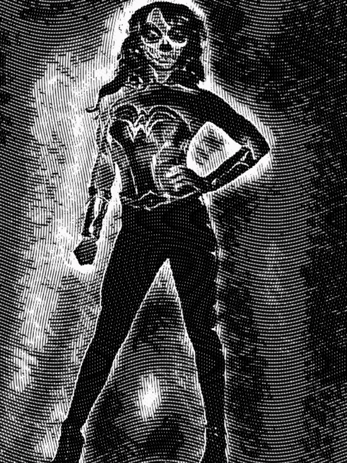 Inspired by the Amazonian princess Diana, aka Wonder Woman, this piece is a fun digital glitchy GIF that's one of a kind.