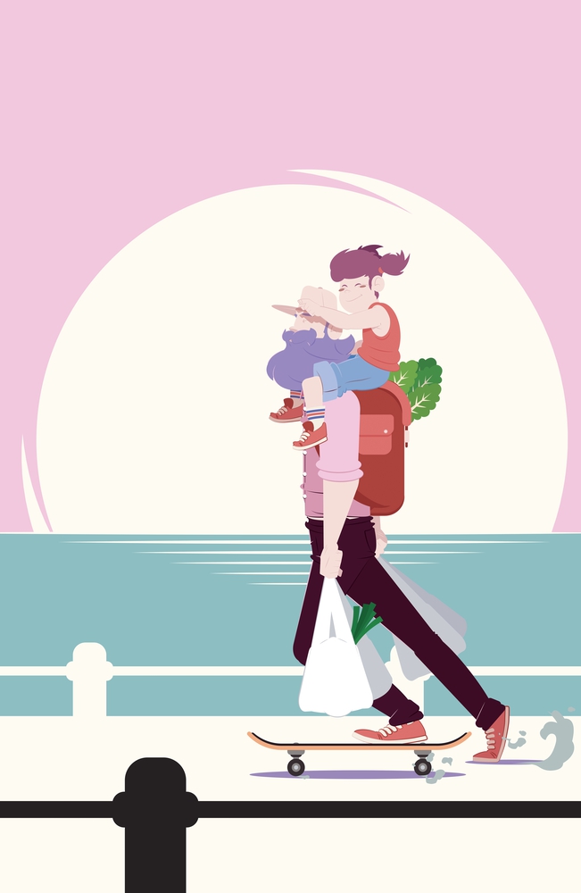 Part of my Series “STAY AT HOME DAD” about modern family. Print available on : https://www.curioos.com/product/print/stay-at-home-dad--grocery-shopping-skateboarding