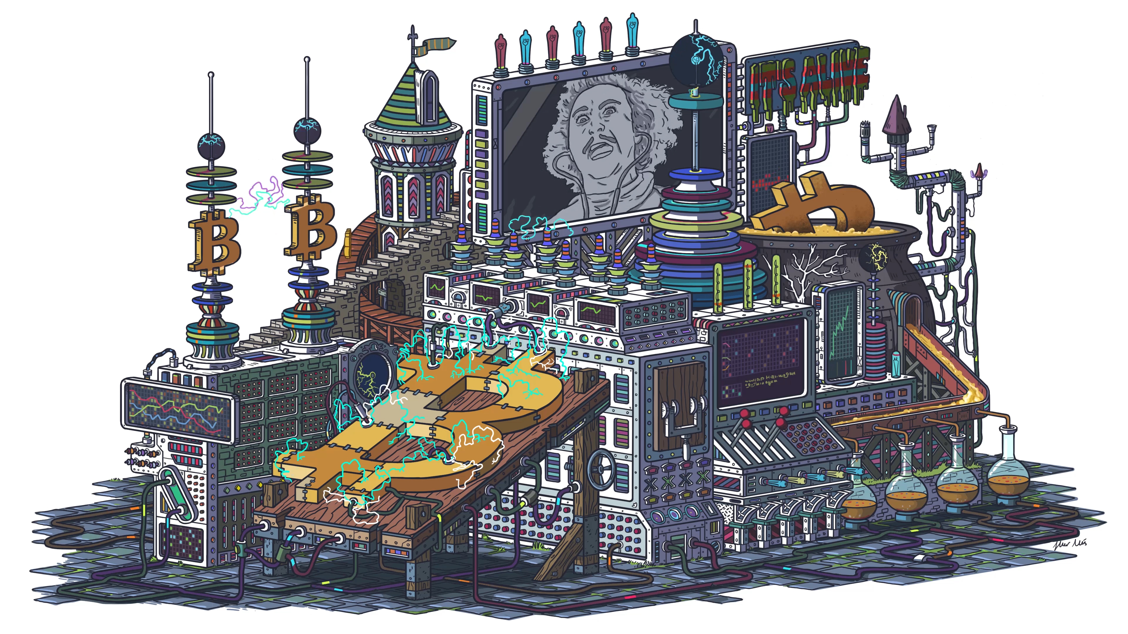 "It’s Alive!" is the complementary artwork in Javier Arrés’ exploratory series titled "Bitcoin, The Origin".