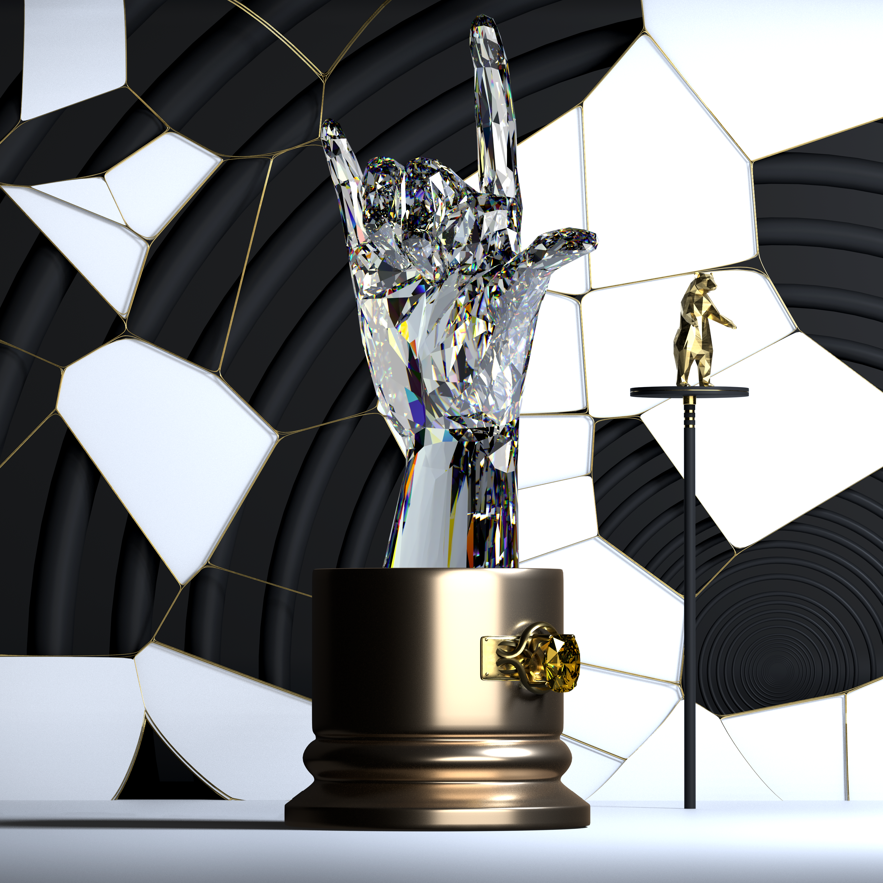 The Diamond Hands is a collection of 11,111 programmatically, randomly generated NFTs on the Ethereum blockchain. We are bringing the NFT community a new level of value in the collectable art scene; so naturally we procured one of the most talented artists in the game, and he's currently approved and actively selling his 1 of 1 artwork on SuperRare.com.