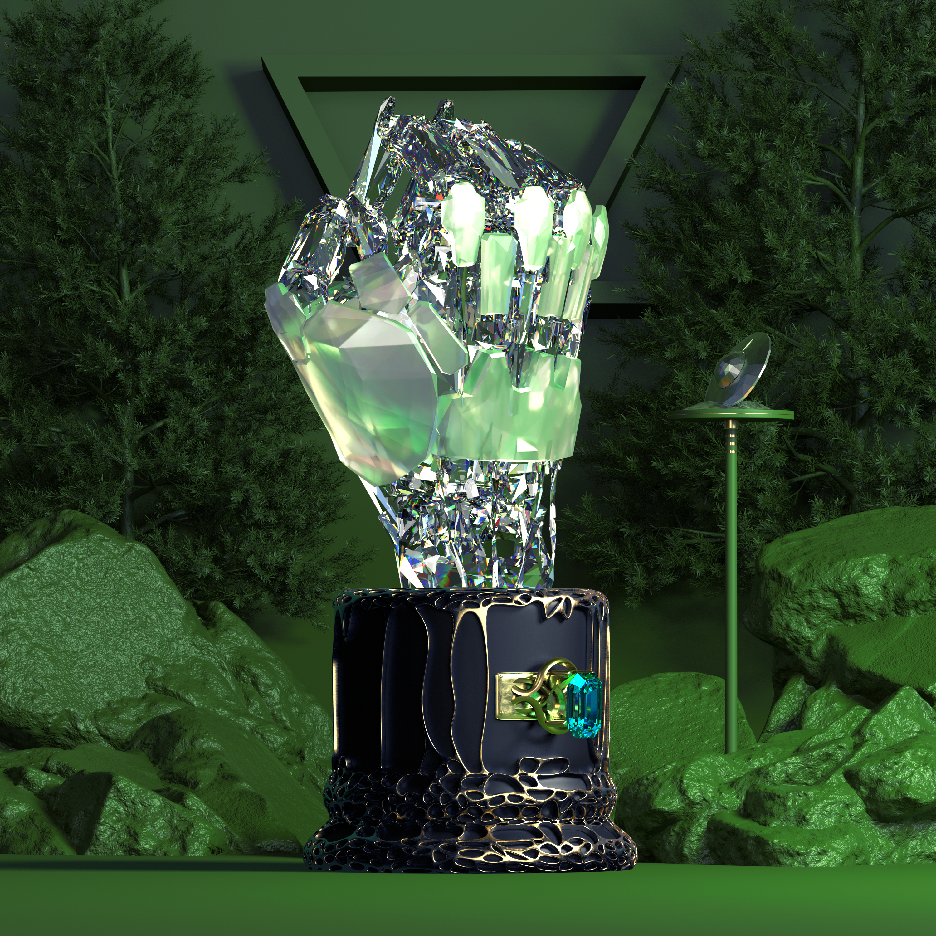 The Diamond Hands is a collection of 11,111 programmatically, randomly generated NFTs on the Ethereum blockchain. We are bringing the NFT community a new level of value in the collectable art scene; so naturally we procured one of the most talented artists in the game, and he's currently approved and actively selling his 1 of 1 artwork on SuperRare.com.