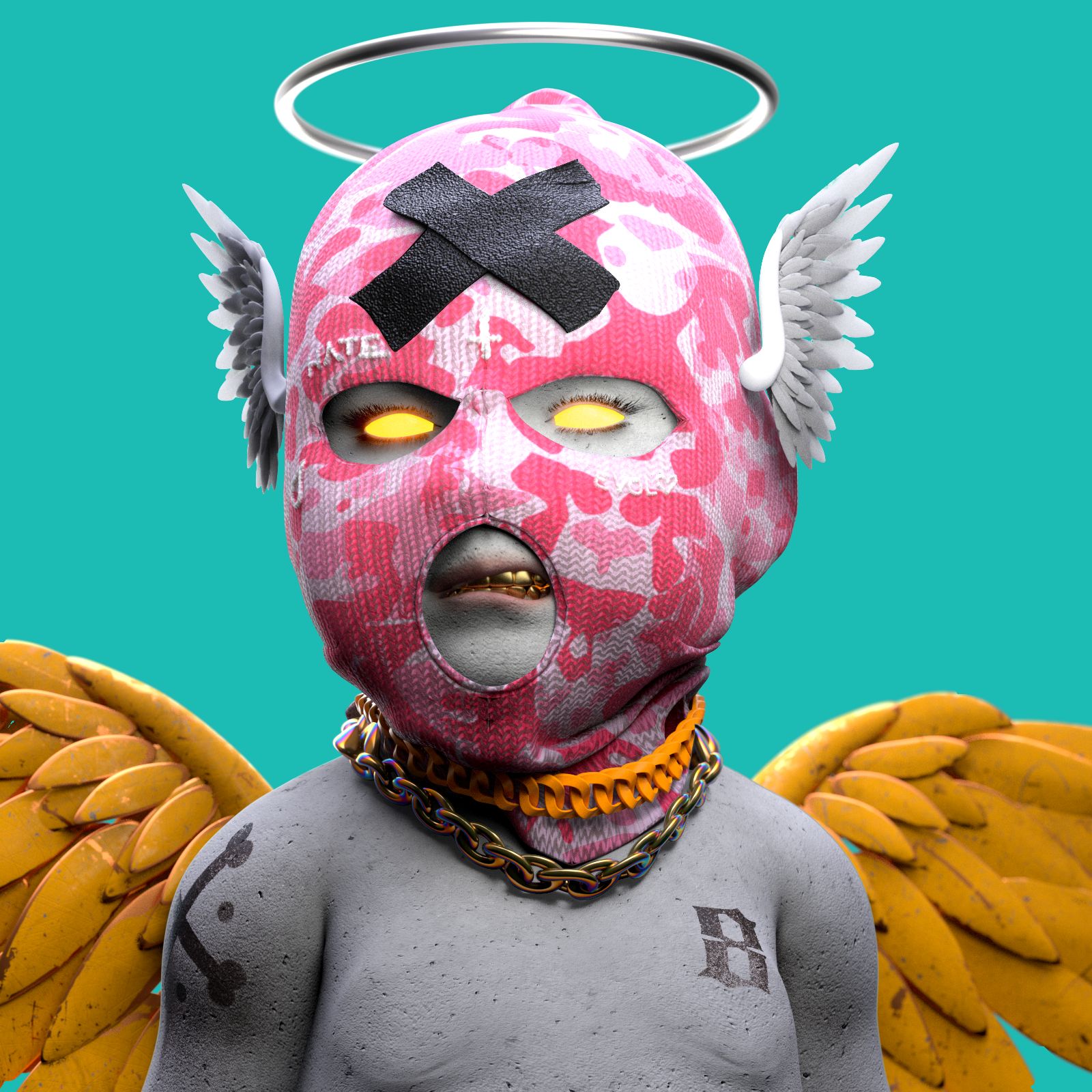 EVOL, a 2000 year old Cherub, has been cast down to earth after a disagreement with the management. At first too proud to try and get back home, now, unable to remember what he has to do to get there. After centuries of equally good and bad behaviour he has found a home on the blockchain. G’EVOLs is a collection of 8888 disguises and forms that EVOL can take on any given day.