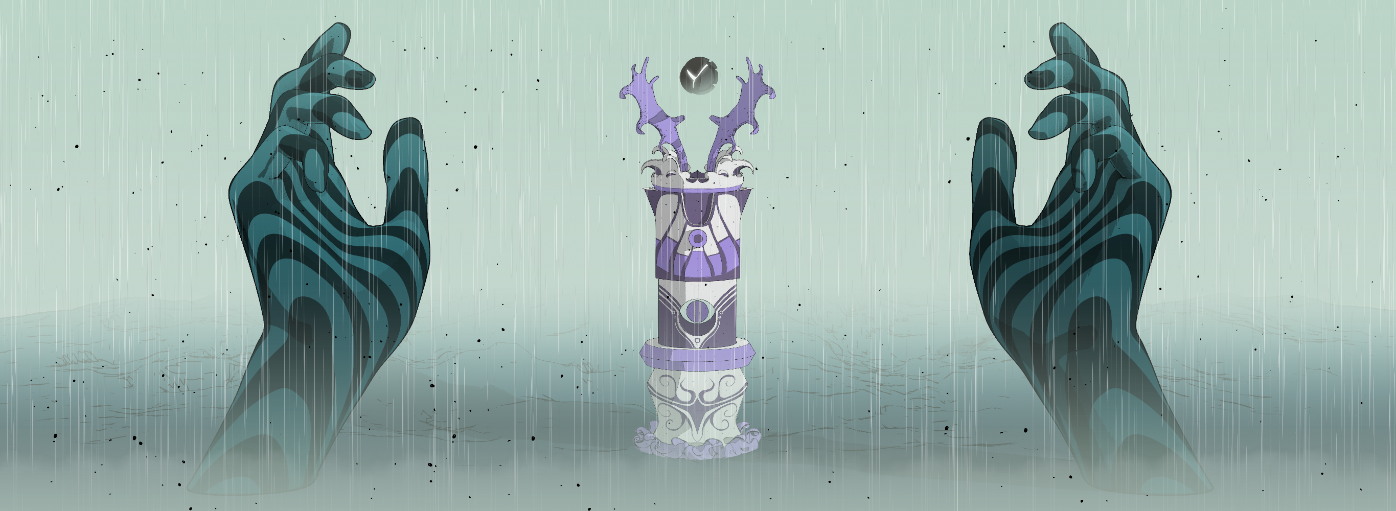 In the black midnight of the new moon, the twins now found themselves abandoned and terrified on the clifftop ruins of Albridge. A place everyone knew to avoid. They dare not leave this clearing, however, for the creatures of the forest predated at night. They were trapped. It was in this place they first laid eyes on an omnimorph. It seemed to emerge from nothing and watched them from a distance, its gaze requesting their presence. Timidly they moved closer to it.