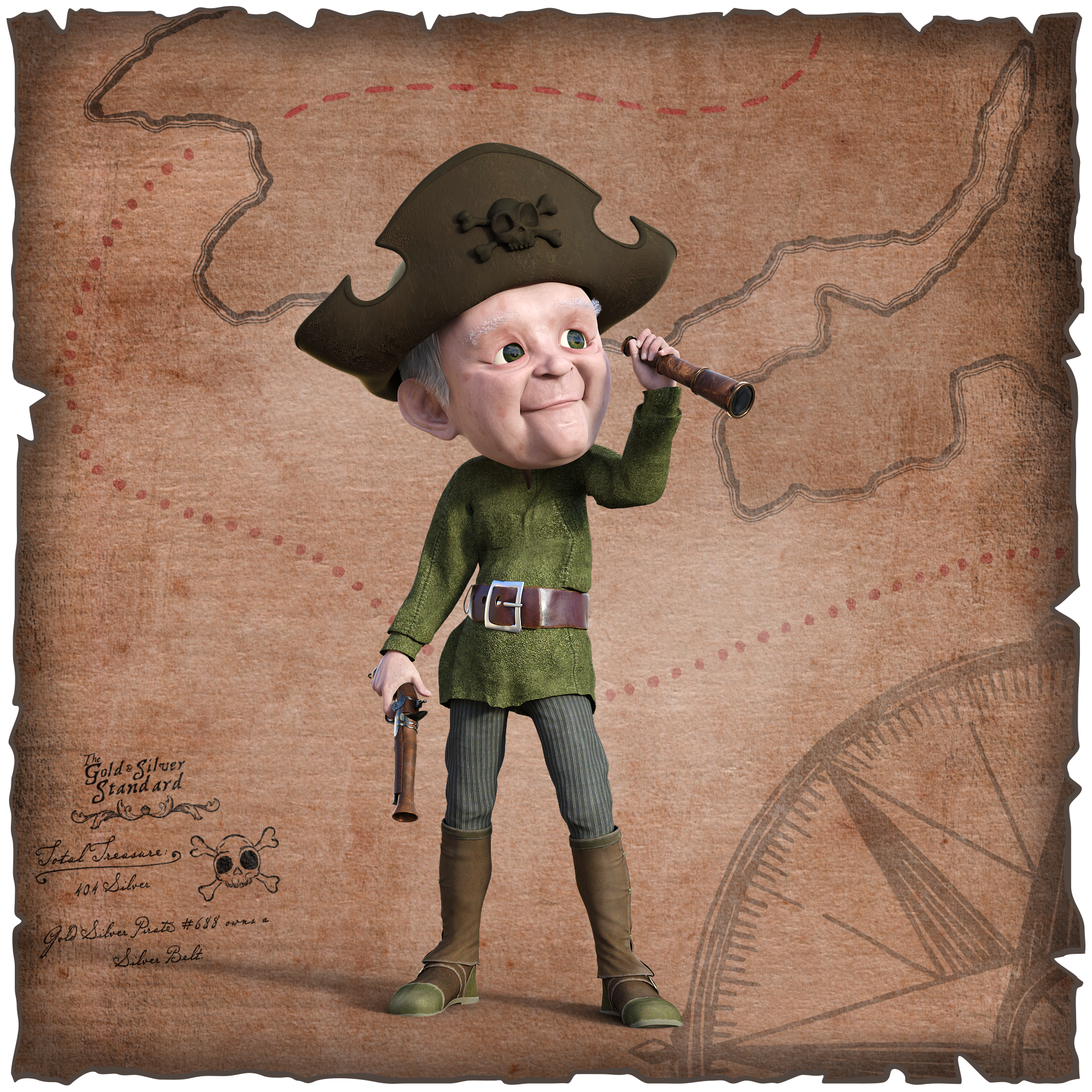 Gold Silver Pirate #688 owns a Silver Belt (Total Treasure: 404 Silver).