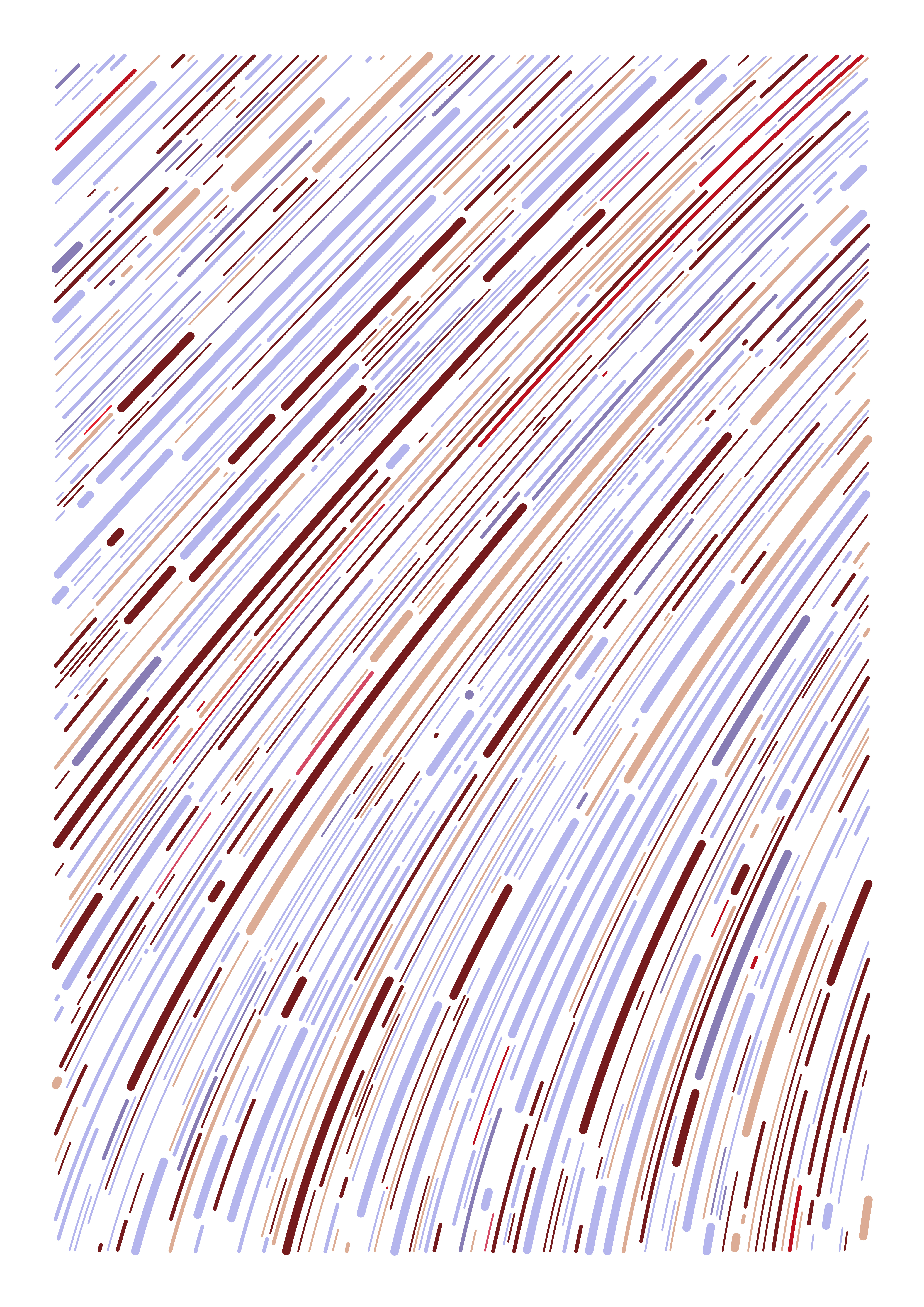 Thousands of particles are propelled along a pseudorandom flow field, painting their trajectory as lines on the canvas.