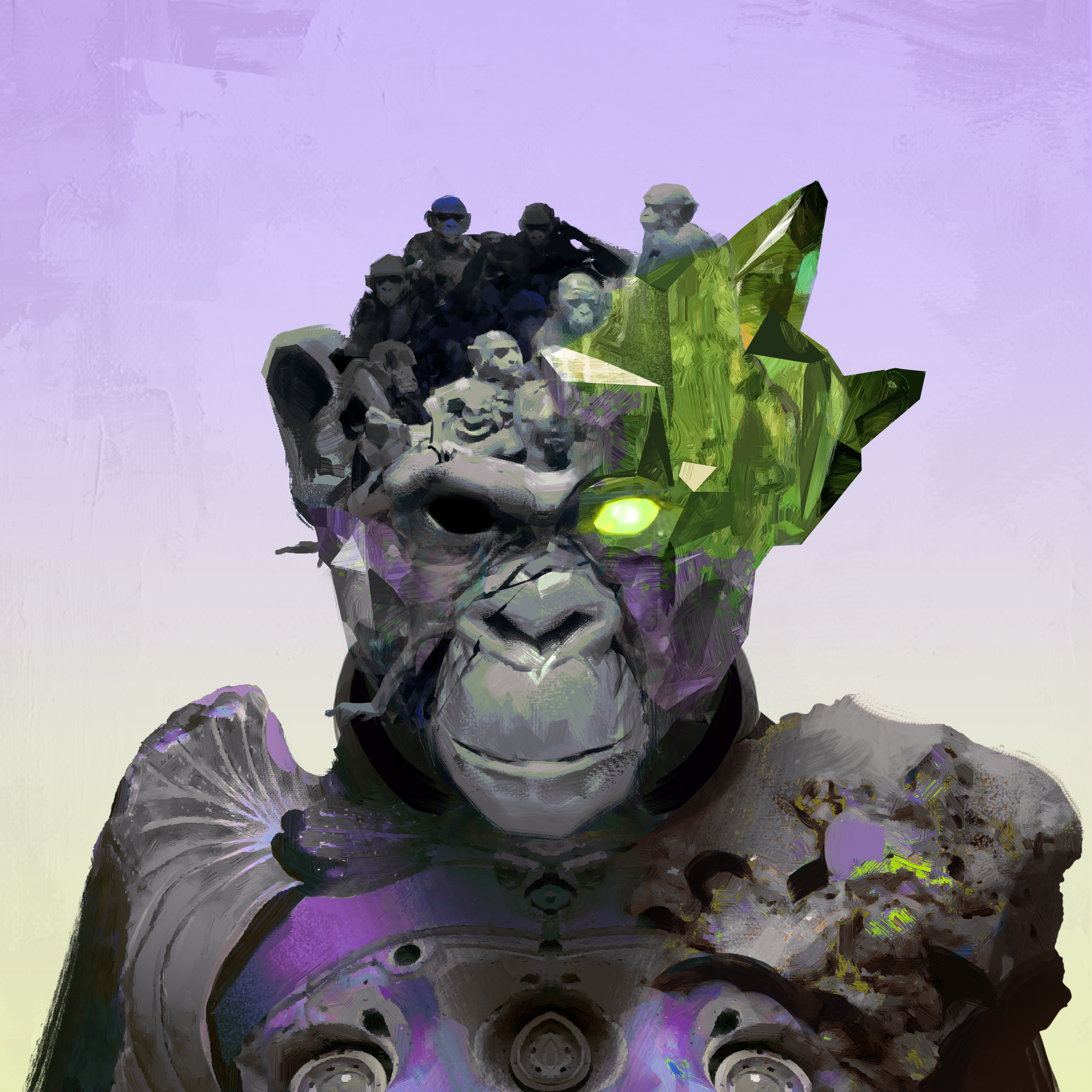 A mysterious electric surge on the infamous "Monkey Island" summoned a gateway that leads to different worlds of evolved apes, linking alternate dimensions and parallel universes. This token represents one of those "Evolved Apes". Keep it safe to increase your battle advantage or use it to spawn a Goliath x Golem by combining 4 evo apes. **Long live the Revolution!**