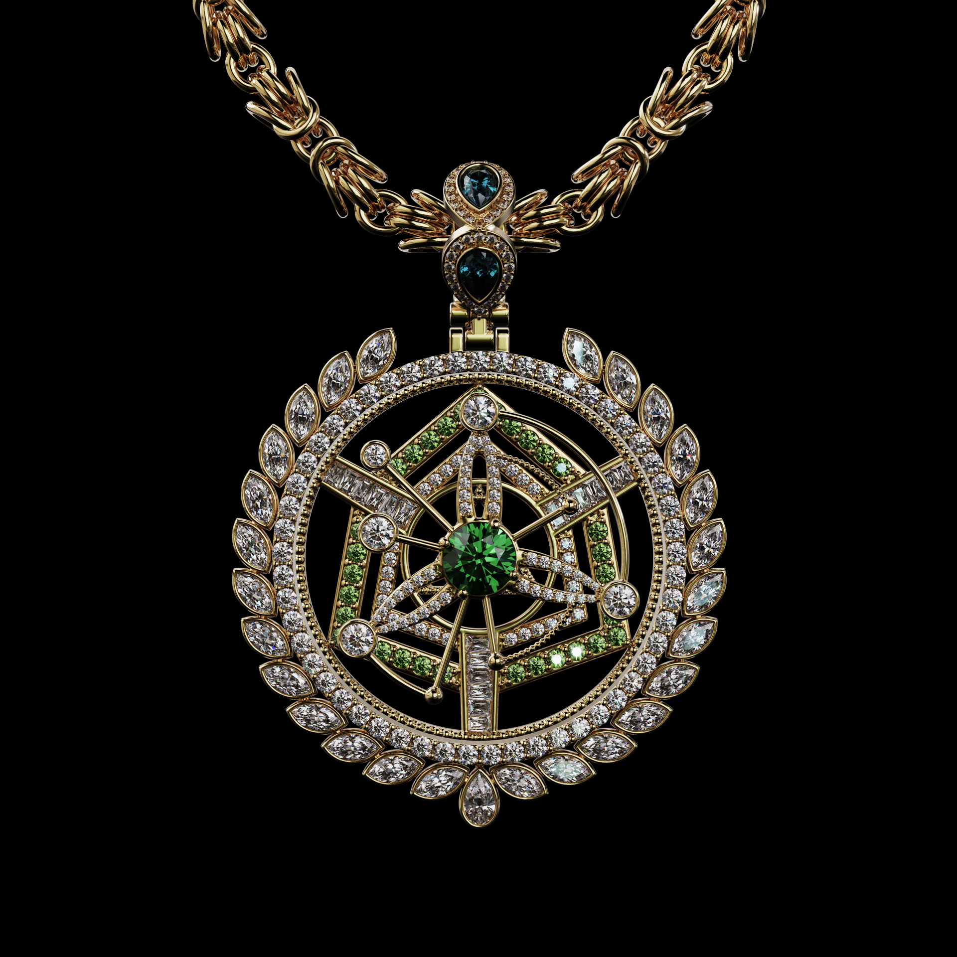 Chains NFT is a collection of 10,000 digitally crafted, algorithmically generated, producible digital fine jewelry pendants developed by Cryptojeweler.