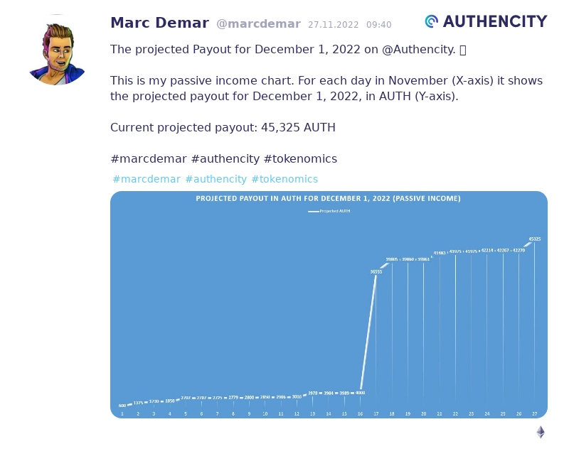The projected Payout for December 1, 2022 on @Authencity. ๐