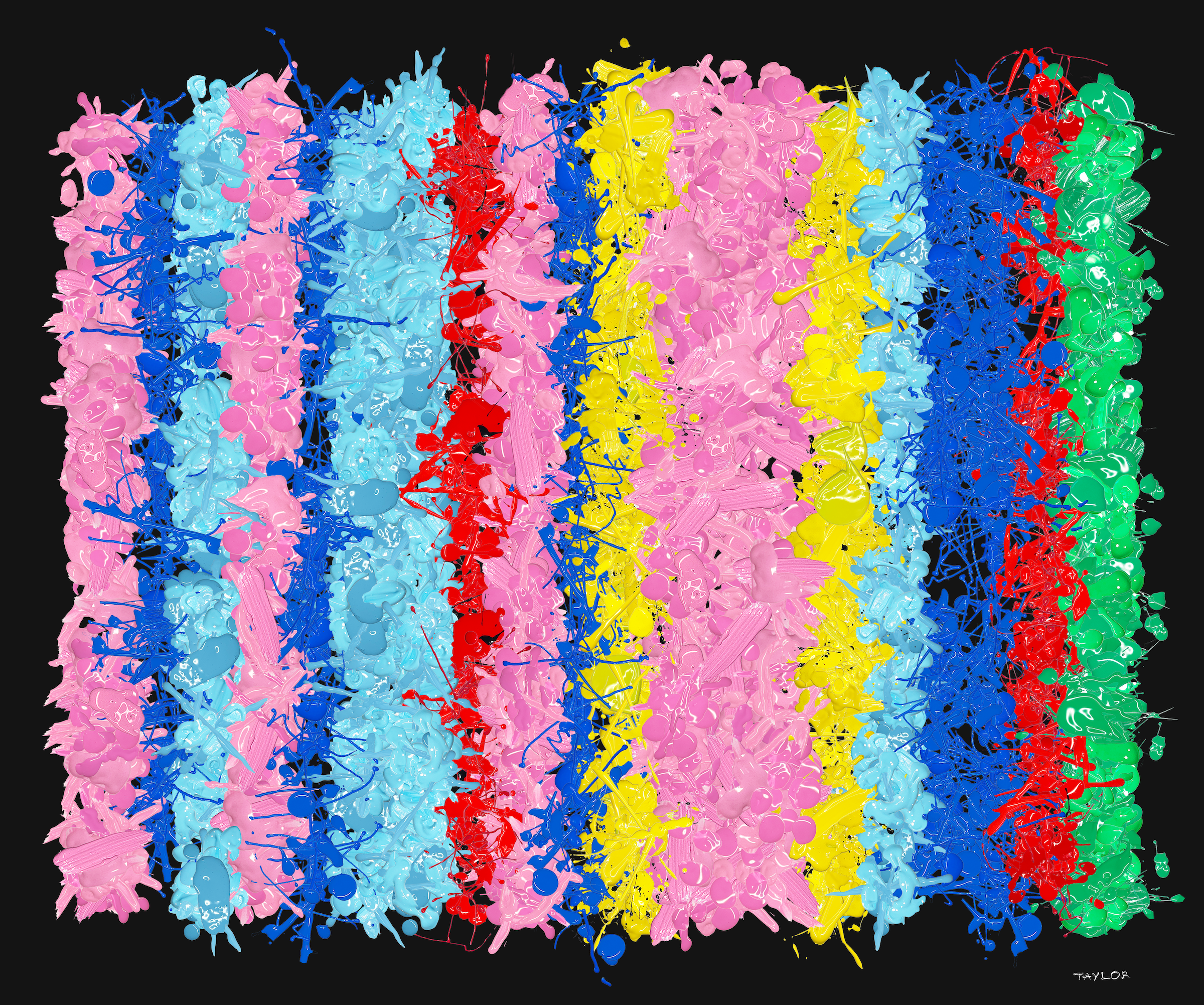 These rugs are different. 1000 unique paintings randomly generated with p5.js. Each rug is stitched with hundreds of images of real paint on canvas and paper
