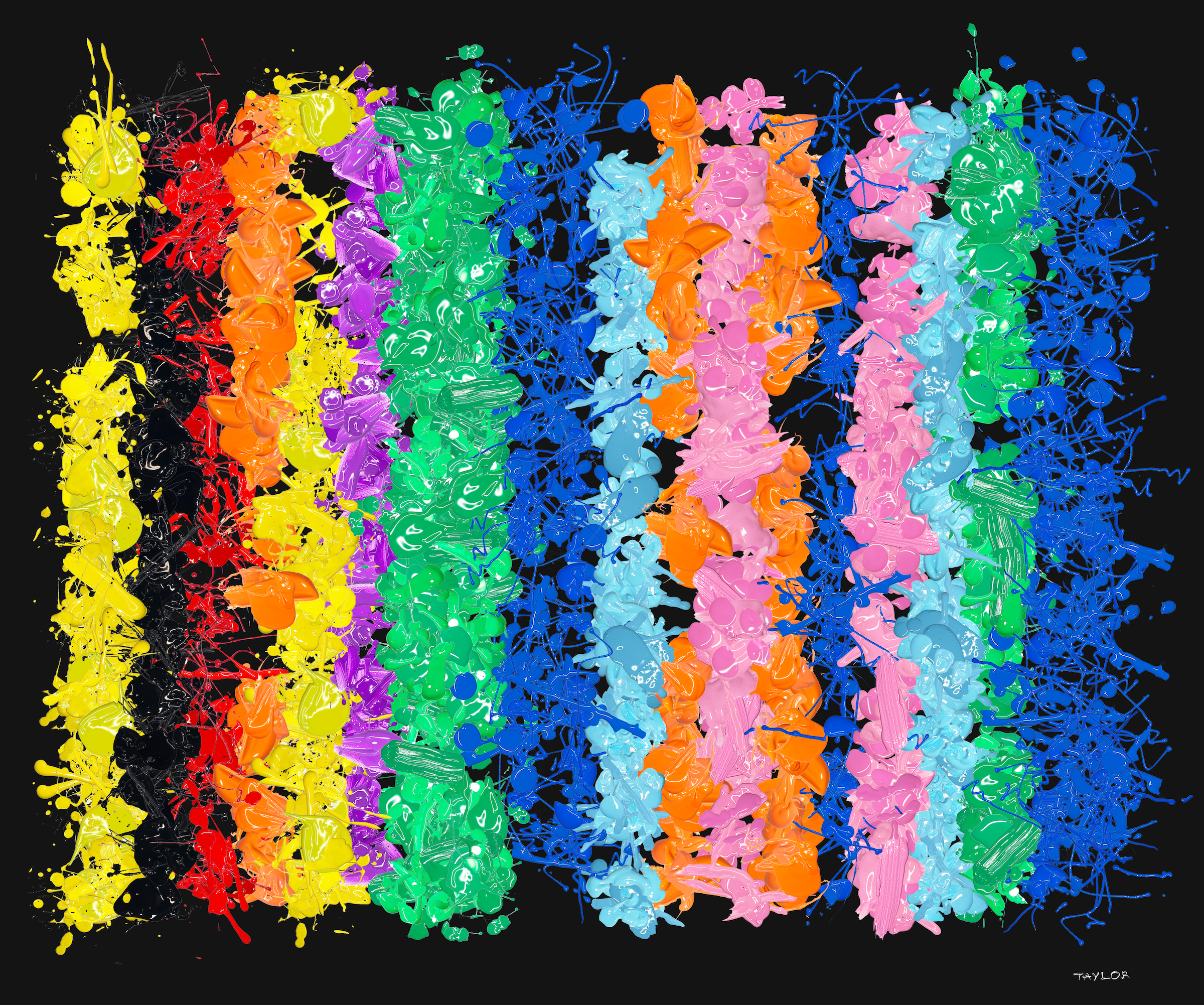 These rugs are different. 1000 unique paintings randomly generated with p5.js. Each rug is stitched with hundreds of images of real paint on canvas and paper