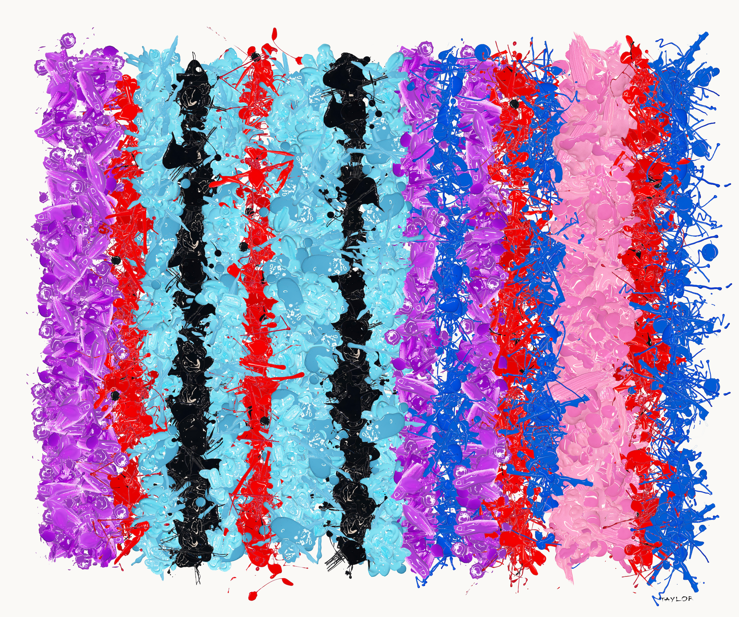 These rugs are different. 1000 unique paintings randomly generated with p5.js. Each rug is stitched with hundreds of images of real paint on canvas and paper