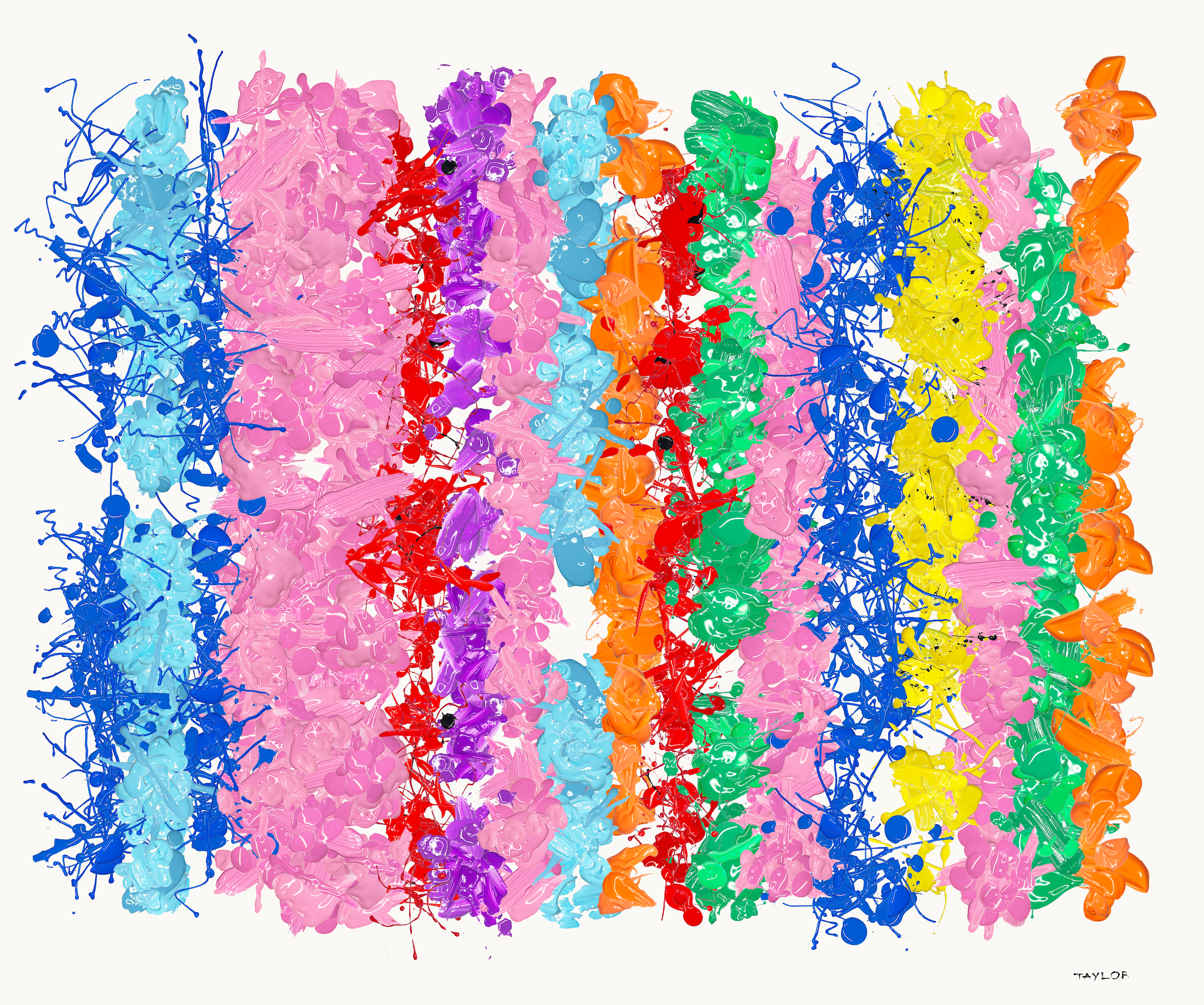 These rugs are different. 1000 unique paintings randomly generated with p5.js. Each rug is stitched with hundreds of images of real paint on canvas and paper