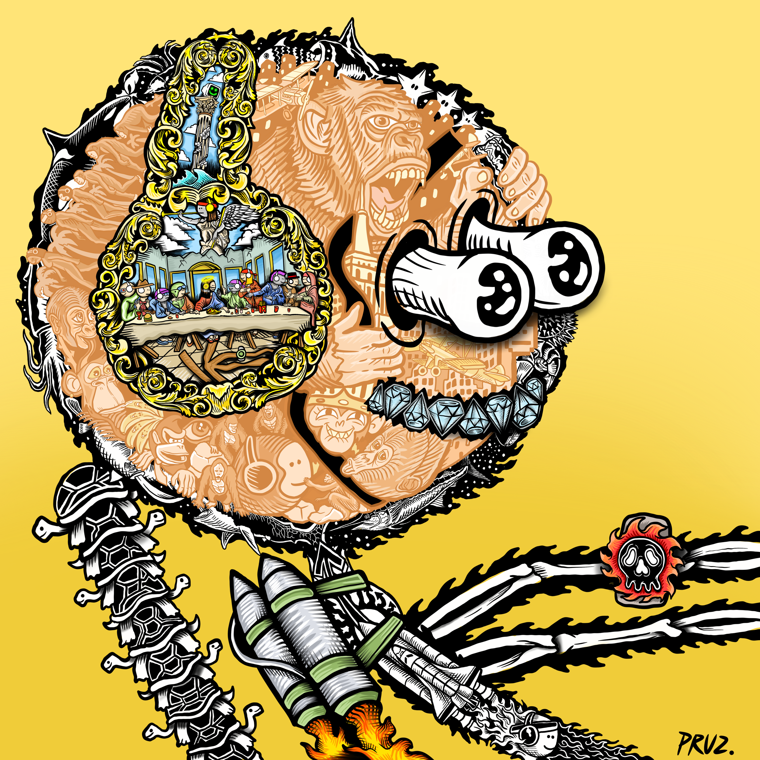 "fine art mfers" is a collection of 4200 hand-drawn degens by renowned artist marlon pruz. a tribute to the og mfers nft, every trait was painstakingly drawn. no matter the rarity, each piece was designed to be a 1 of 1 masterpiece filled with easter eggs, cultural references, and a mind-blowing amount of detail. marlon flips the simplicity of mfers by using them as a template for these high-quality illustrations.