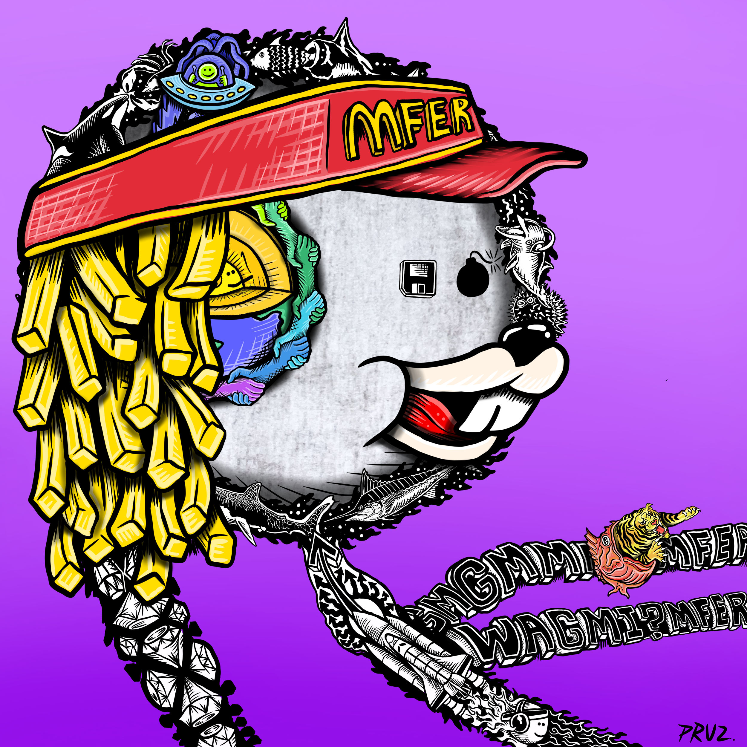 "fine art mfers" is a collection of 4200 hand-drawn degens by renowned artist marlon pruz. a tribute to the og mfers nft, every trait was painstakingly drawn. no matter the rarity, each piece was designed to be a 1 of 1 masterpiece filled with easter eggs, cultural references, and a mind-blowing amount of detail. marlon flips the simplicity of mfers by using them as a template for these high-quality illustrations.