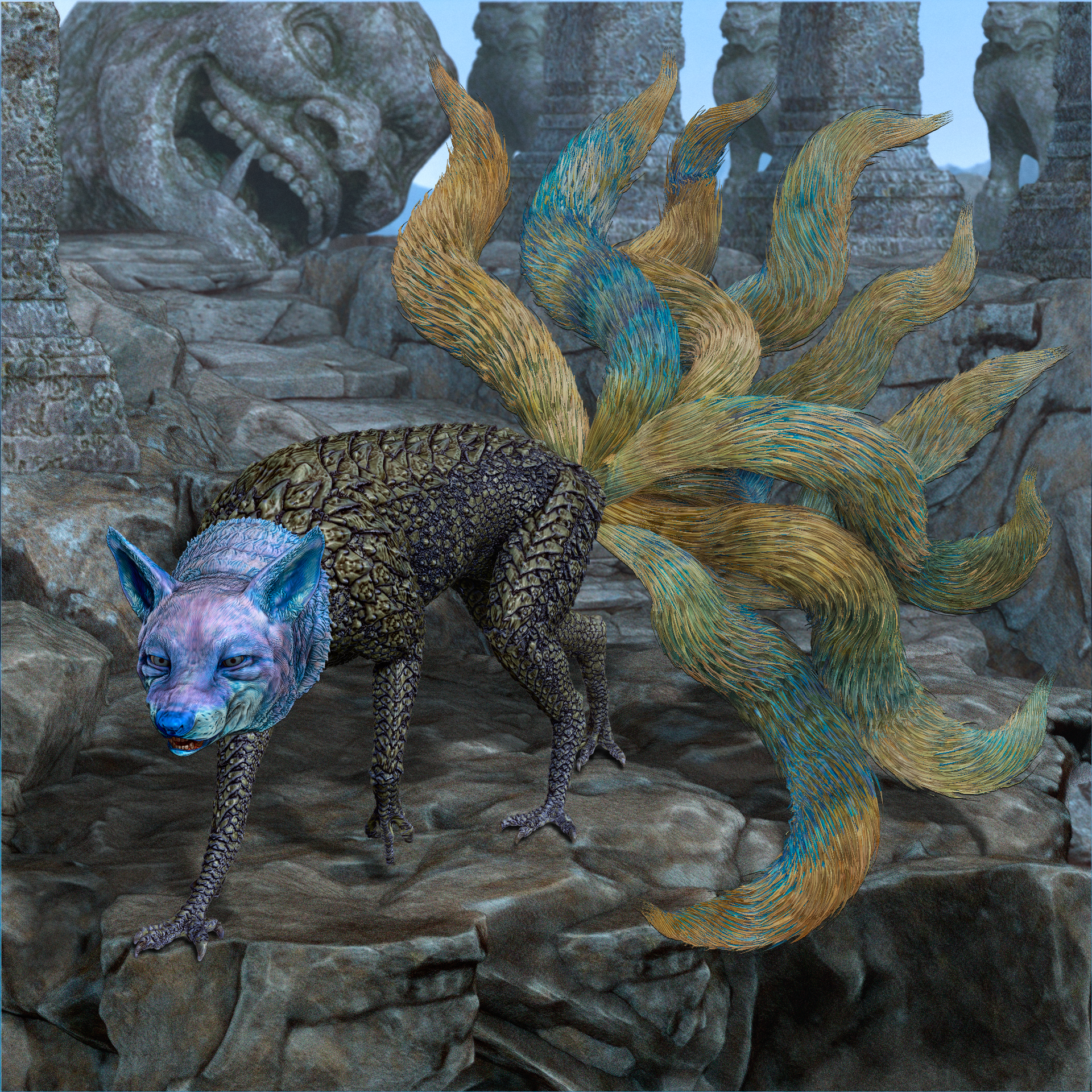 Kitsune are the parallel spirits of Oni Ronin. In the real world, they have the appearance of a fox, but in the Oni Realm, their true form emerges. Each Kitsune is completely unique, composed of strange and sometimes terrifying elements from across space and time. Kitsune can be allies, escorts or deceptive antagonists but in every case, they are eternally bound to your Ronin's soul