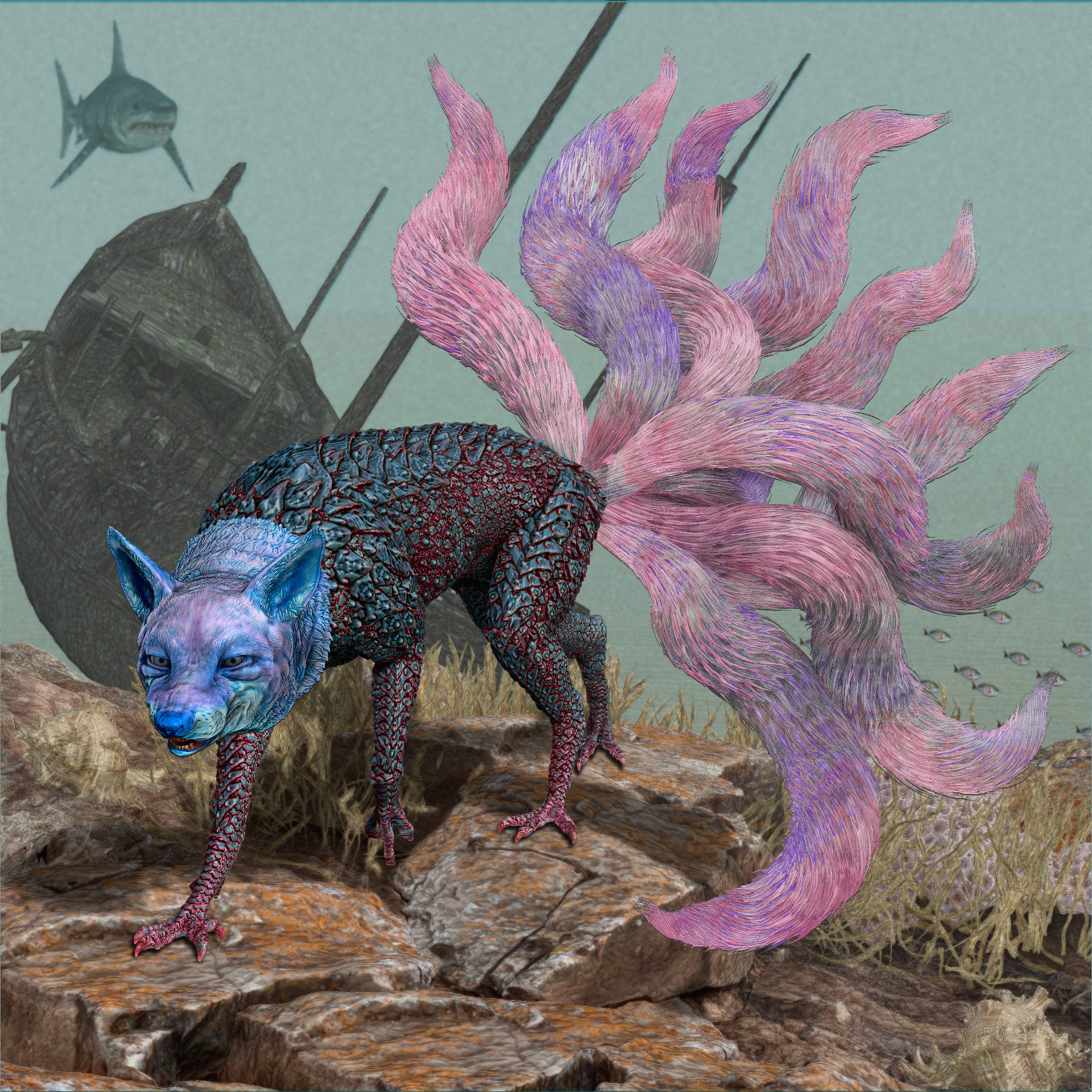Kitsune are the parallel spirits of Oni Ronin. In the real world, they have the appearance of a fox, but in the Oni Realm, their true form emerges. Each Kitsune is completely unique, composed of strange and sometimes terrifying elements from across space and time. Kitsune can be allies, escorts or deceptive antagonists but in every case, they are eternally bound to your Ronin's soul