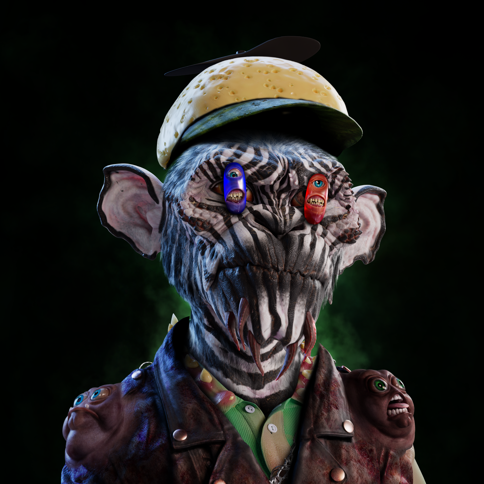 The Infected Prime Apes in this collection can only be created by feeding your Prime Ape a poisoned banana.